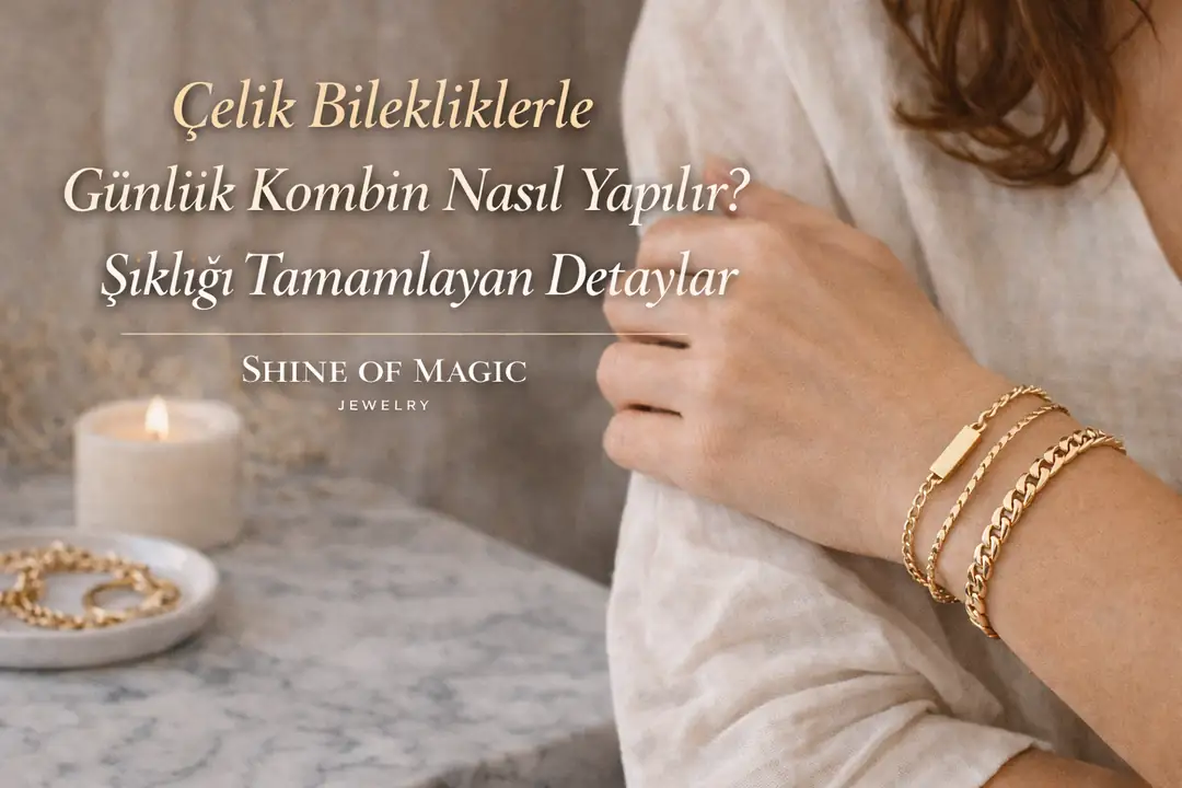 Shine of Magic Jewelry, çelik bileklik, çelik kolye, çelik küpe ve çelik yüzük koleksiyonlarıyla; günlük şıklığı zahmetsiz ve kalıcı hale getirir.